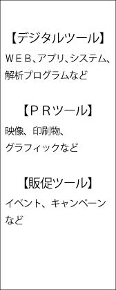 各種ツールをデジタルマーケットとリアルマーケットで展開します。各ツール特性を活かしデジタルマーケットとリアルマーケットで最大限の相乗効果を生み出していきます。